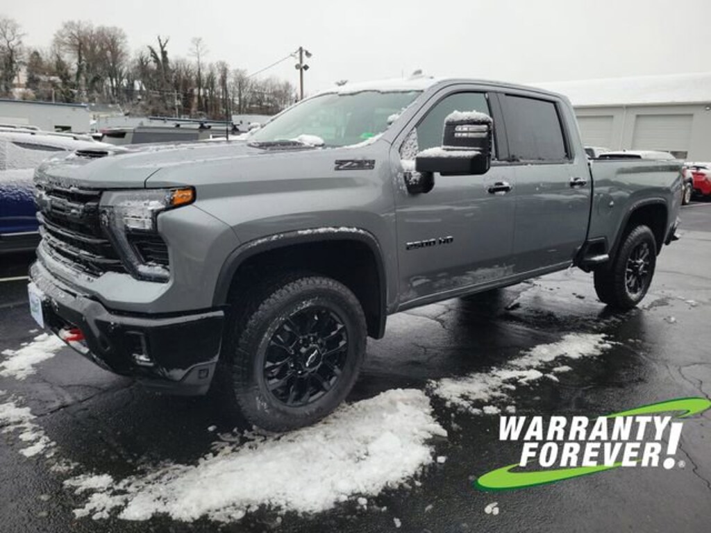 **WARRANTY FOREVER!**, Silverado 2500HD LTZ, 4D Crew Cab, Duramax 6.6L V8 Turbodiesel, 10-Speed Automatic, 4WD, Sterling Gray Metallic, Jet Black w/Perforated Leather Seat Trim, 2 Charge/Data USB Ports Inside Center Console, Adaptive Cruise Control, Bed View Camera w/2 Trailer Camera Provisions, Black Chevytec Spray-On Bedliner, Black Grille Bar w/Chevy Black Bow Tie, BOSE Premium 7-Speaker Sound System, Dual 220-Amp Primary/170-Amp Auxiliary Alternators, Floor-Mounted Center Console, Front Bucket Seats, Front Frame-Mounted Red Recovery Hooks, Gooseneck/5th Wheel Prep Package, HD Surround Vision, Heated 2nd Row Outboard Seats, High Gloss Black Door Handles, High Gloss Black Front Bumper, High Gloss Black Mirror Caps, High Gloss Black Rear Bumper, Hill Descent Control, LED Cargo Area Lighting, LED Smoked Amber Roof Marker Lamps, LTZ Convenience Package, LTZ Convenience Package II, Max Trailering Package, Off-Road Suspension, Power Sliding Rear Window w/Defogger, Rear Cross Traffic Alert, Safety Alert Seat, Safety Package, Trail Boss Package, Trailer Camera Provisions, Trailer Side Blind Zone Alert, Ultrasonic Front & Rear Park Assist, Universal Home Remote, Ventilated Driver & Front Passenger Seats, Wheels: 20 High Gloss Black Painted, Wireless Charging, Z71 Off-Road Package.