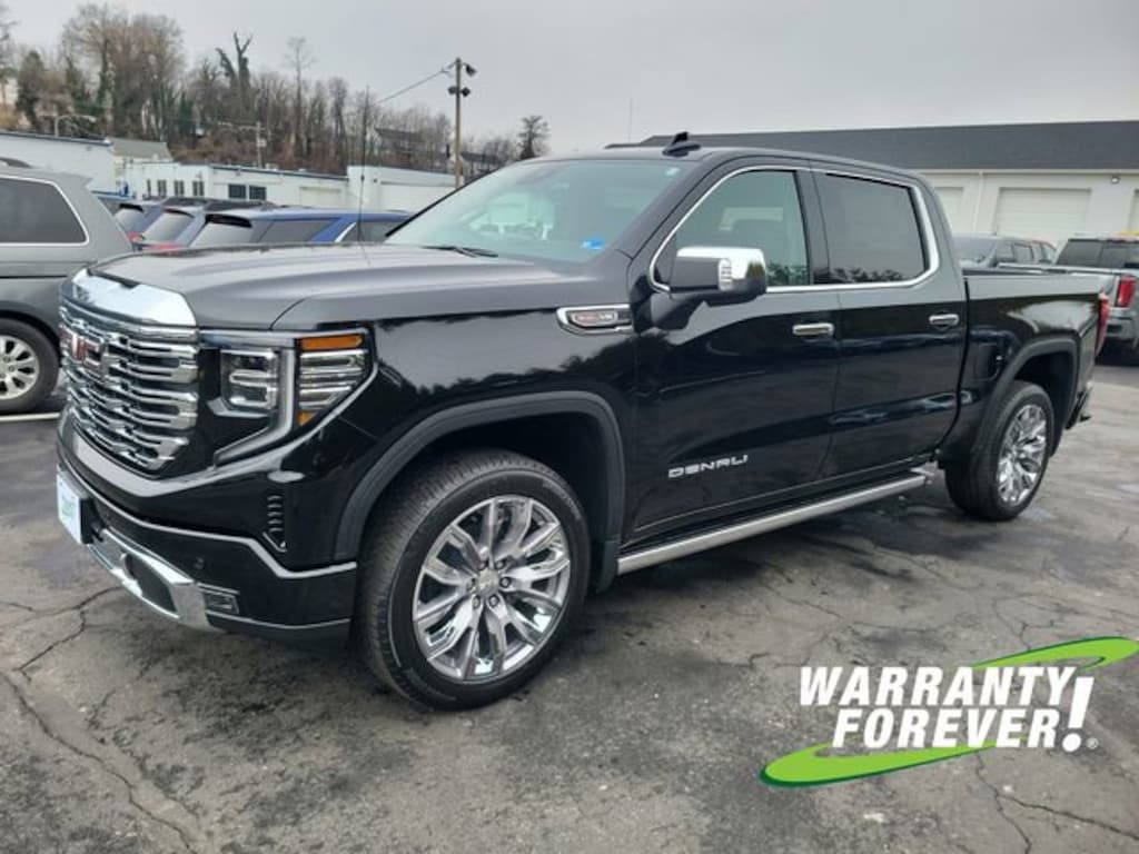 **WARRANTY FOREVER!**, Sierra 1500 Denali, 4D Crew Cab, EcoTec3 6.2L V8, 10-Speed Automatic, 4WD, Onyx Black, Jet Black w/Forge Perforated Leather Seat Trim, 120-Volt Bed Mounted Power Outlet, 120-Volt Interior Power Outlet, 170 Amp Alternator, 2 Charge/Data USB Ports Inside Center Console, 2 Type-C Charge-Only Rear USB Ports, 2 USB Ports, Auto-Locking Rear Differential, Auxiliary External Transmission Oil Cooler, Bed View Camera, Chrome Header with Signature Denali Chrome Grille, Chrome Recovery Hooks, Chrome Wheel to Wheel Assist Steps, Color-Keyed Carpeting Floor Covering, Deep-Tinted Glass, Denali Premium Suspension with Adaptive Ride Control, Denali Reserve Super Package, Electric Rear-Window Defogger, Floor-Mounted Center Console, Front Rain-Sensing Wipers, GMC MultiPro Power Steps, HD Surround Vision, Heated 2nd Row Outboard Seats, Heated Driver and Front Outboard Passenger Seating, Heavy-Duty Air Filter, Hill Descent Control, Hitch Guidance, Hitch View, in-Vehicle Trailering System App, Integrated Trailer Brake Controller, Keyless Open and Start, LED Cargo Area Lighting, Multicolor 15 Diagonal Head-Up Display, OnStar Services Capable, Perimeter Lighting, Power Door Locks, Power Front Passenger Windows with Express Up/Down, Power Front Windows with Driver Express Up/Down, Power Rake and Telescoping Steering Column, Power Rear Windows with Express Down, Power Sliding Rear Window with Rear Defogger, Power Sunroof, Preferred Equipment Group 5SA, Premium Bose 7-Speaker Sound System, Push Button Start, Rear Camera Mirror, Rear Cross Traffic Braking, Rear Pedestrian Detection, Rear Wheelhouse Liners, Remote Vehicle Starter System, SiriusXM with 360L Trial Subscription, Spray-on Pickup Bedliner with GMC Logo, Steering Wheel Audio Controls, Super Cruise, Super Cruise Wrapped Steering Wheel, Technology Package, Theft Deterrent System (unauthorized Entry), Trailer Camera Provisions, Trailer Side Blind Zone Alert, Trailering Package, Ultrasonic Front and Rear Park Assist, Universal Home Remote, Ventilated Driver and Front Passenger Seats, Wheel Locks (set of 4), Wheels: 20 x 9 Multi-Dimensional Polished Aluminum, Wheels: 22 x 9 Painted Aluminum, Wi-Fi Hotspot Capable, Wireless Charging.