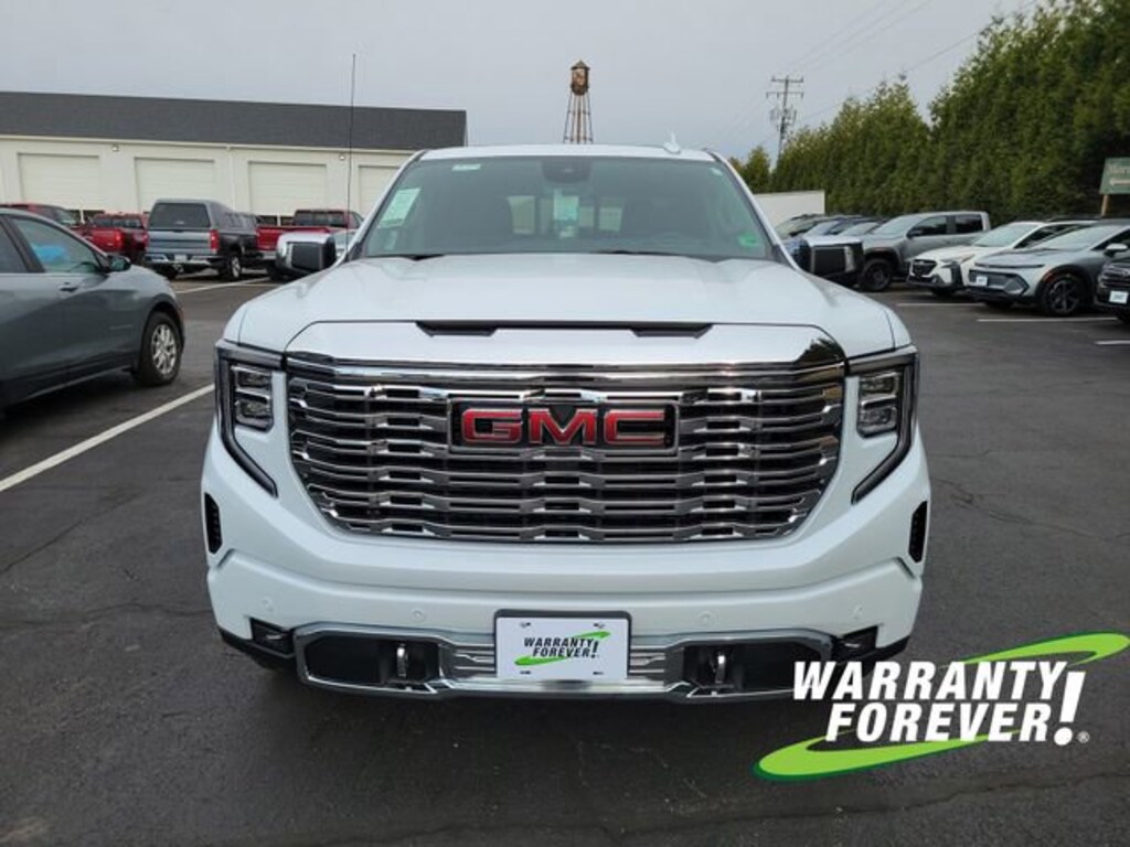 **WARRANTY FOREVER!**, Sierra 1500 Denali, 4D Crew Cab, EcoTec3 6.2L V8, 10-Speed Automatic, 4WD, Glacier White, Jet Black w/Perf Leather-Appointed Front Outboard Seat Trim, 120-Volt Bed Mounted Power Outlet, 120-Volt Interior Power Outlet, 170 Amp Alternator, 2 Charge/Data USB Ports Inside Center Console, 2 Type-C Charge-Only Rear USB Ports, 2 USB Ports, Auto-Locking Rear Differential, Auxiliary External Transmission Oil Cooler, Bed View Camera, Chrome Header w/Signature Denali Chrome Grille, Chrome Recovery Hooks, Chrome Wheel To Wheel Assist Steps, Color-Keyed Carpeting Floor Covering, Deep-Tinted Glass, Denali Reserve Super Package, Dual Active Exhaust, Electric Rear-Window Defogger, Floor-Mounted Center Console, Front Rain-Sensing Wipers, GMC MultiPro Power Steps, HD Surround Vision, Heated 2nd Row Outboard Seats, Heated Driver & Front Outboard Passenger Seating, Heavy-Duty Air Filter, Hill Descent Control, Hitch Guidance, Hitch View, In-Vehicle Trailering System App, Integrated Trailer Brake Controller, Keyless Open & Start, LED Cargo Area Lighting, Multicolor 15 Diagonal Head-Up Display, OnStar Services Capable, Perimeter Lighting, Power Door Locks, Power Front Passenger Windows w/Express Up/Down, Power Front Windows w/Driver Express Up/Down, Power Rake & Telescoping Steering Column, Power Rear Windows w/Express Down, Power Sliding Rear Window w/Rear Defogger, Power Sunroof, Preferred Equipment Group 5SA, Premium Bose 7-Speaker Sound System, Push Button Start, Rear Camera Mirror, Rear Cross Traffic Braking, Rear Pedestrian Detection, Rear Wheelhouse Liners, Remote Vehicle Starter System, SiriusXM w/360L Trial Subscription, Spray-On Pickup Bedliner w/GMC Logo, Steering Wheel Audio Controls, Super Cruise, Super Cruise Wrapped Steering Wheel, Technology Package, Theft Deterrent System (Unauthorized Entry), Trailer Camera Provisions, Trailer Side Blind Zone Alert, Trailering Package, Ultrasonic Front & Rear Park Assist, Universal Home Remote, Ventilated Driver & Front Passenger Seats, Wheel Locks (Set of 4) (LPO), Wheels: 22 x 9 Painted Aluminum, Wi-Fi Hotspot Capable, Wireless Charging.