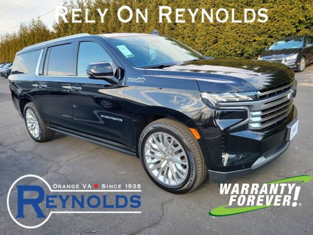 CARFAX One-Owner. Black 2023 Chevrolet Suburban High Country 4WD 10-Speed Automatic with Overdrive EcoTec3 6.2L V8 **WARRANTY FOREVER!**, **NAVIGATION/GPS**, **SUNROOF/MOONROOF**, **LEATHER**, **ONE OWNER**, ** ACCIDENT FREE CARFAX REPORT **, **STILL UNDER FACTORY WARRANTY**, Completely Detailed, Recent Oil Change, Multi Point Inspection, Suburban High Country, 4D Sport Utility, EcoTec3 6.2L V8, 10-Speed Automatic with Overdrive, 4WD, Black, Jet Black/Mocha w/Perforated Leather Seating Surfaces, 15 Diagonal Multi-Color Head-Up Display, 1st & 2nd Row Color-Keyed Carpeted Floor Mats, 2-Speed Active Electronic AutoTrac Transfer Case, 3rd Row 60/40 Power-Folding Split-Bench, Advanced Trailering Package, Air Ride Adaptive Suspension, Bose 10-Speaker Surround w/CenterPoint, Bright Front & Rear Door Sill Plates, Chrome Door Handles w/Body-Color Strip, Color-Keyed Carpeting Floor Covering, Driver & Front Outboard Passenger Airbags, Dual Exhaust System, Dual-Pane Power Panoramic Sunroof, Enhanced Automatic Emergency Braking, Enhanced Driver Information Center, Extra Capacity Cooling System, Floor Console, Hands-Free Rear Power Programmable Liftgate, HD Surround Vision, Heated & Ventilated Driver & Front Passenger Seats, Heated 2nd Row Outboard Seats, Heated Driver & Front Passenger Seats, Heated Steering Wheel, High Country Deluxe, Hill Descent Control, Hitch Guidance w/Hitch View, Infotainment Display, Inside Rearview Auto-Dimming Rear Camera Mirror, Integrated Trailer Brake Controller, Lane Change Alert w/Side Blind Zone Alert, LED Daytime Running Lamps, Max Trailering Package, Memory Settings, Outside Heated Power-Adjustable Mirrors, Power Release 2nd Row Bucket Seats, Power Tilt & Telescopic Steering Column, Power-Retractable Assist Steps, Preferred Equipment Group 3LZ, Rear Camera Mirror Washer, Rear Cross Traffic Alert, Rear Pedestrian Alert, Remote Start, Safety Alert Seat, SiriusXM Radio w/360L, Smart Trailer Integration Indicator, Trailer Side Blind Zone Alert, Universal Home Remote, Wireless Charging, Wrapped Steering Wheel.Every vehicle we sell under 100,000 miles will come with WARRANTY FOREVER, at no cost to you! Coverage so good you can't put a price on it! Unlimited Time, Unlimited Mileage, $100 Towing Reimbursement. Ask us for more details!Recent Arrival! Odometer is 12600 miles below market average!