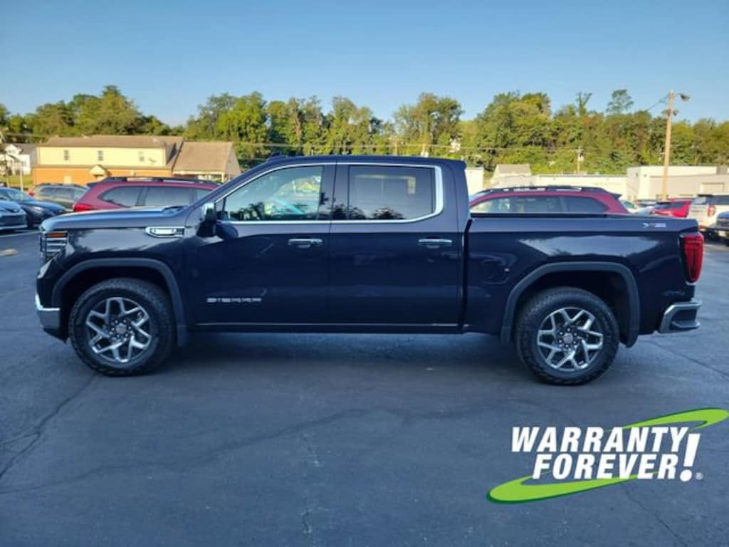 CARFAX One-Owner. Clean CARFAX. Titanium Rush Metallic 2023 GMC Sierra 1500 SLT 4WD 10-Speed Automatic 3.0L I6 **WARRANTY FOREVER!**, **LEATHER**, **ONE OWNER**, ** ACCIDENT FREE CARFAX REPORT **, **STILL UNDER FACTORY WARRANTY**, Completely Detailed, Recent Oil Change, Multi Point Inspection, Sierra 1500 SLT, 4D Crew Cab, 3.0L I6, 10-Speed Automatic, 4WD, Titanium Rush Metallic, Jet Black Leather, 120-Volt Bed Mounted Power Outlet, 120-Volt Instrument Panel Power Outlet, 170 Amp Alternator, 2 Charge/Data USB Ports, 2 Charge/Data USB Ports Inside Center Console, 2 Type-C Charge-Only Rear USB Ports, 20 Polished Aluminum Wheels, 6-Speaker Audio System Feature, Adaptive Cruise Control, Auto-Locking Rear Differential, Auxiliary External Transmission Oil Cooler, Chrome Header & Chrome Grille Insert Bars, Chrome Wheel To Wheel Assist Steps, Color-Keyed Carpeting Floor Covering, Compass, Deep-Tinted Glass, Electric Rear-Window Defogger, Electrical Steering Column Lock, Electronic Precision Shift, Floor-Mounted Center Console, Front Bucket Seats, Front Frame-Mounted Black Recovery Hooks, Front Rainsensing Wipers, GMC Connected Access Capable, HD Rear Vision Camera, HD Surround Vision, Heated 2nd Row Outboard Seats, High Capacity Suspension Package, Hitch Guidance, Hitch Guidance w/Hitch View, In-Vehicle Trailering App, Integrated Trailer Brake Controller, Keyless Open & Start, LED Cargo Area Lighting, Manual Tilt-Wheel & Telescoping Steering Column, OnStar & GMC Connected Services Capable, Perimeter Lighting, Power Door Locks, Power Front Passenger Windows w/Express Up/Down, Power Front Windows w/Driver Express Up/Down, Power Rake & Telescoping Steering Column, Power Rear Windows w/Express Down, Power Sliding Rear Window w/Rear Defogger, Preferred Equipment Group 4SA, Premium Bose 7-Speaker Sound System, ProGrade Trailering System, Push Button Start, Rear Cross Traffic Braking, Rear Pedestrian Detection, Rear Wheelhouse Liners, Remote Vehicle Starter System, Safety Alert Seat, Sierra Safety Plus Package, SiriusXM w/360L, SLT Convenience Package, SLT Preferred Package, SLT Premium Plus Package, Spray-On Pickup Bed Liner w/GMC Logo, Standard Suspension Package, Steering Wheel Audio Controls, Theft Deterrent System (Unauthorized Entry), Trailer Camera Provisions, Trailer Side Blind Zone Alert, Trailering Package, Ultrasonic Front & Rear Park Assist, Universal Home Remote, Ventilated Driver & Front Passenger Seats, Wi-Fi Hotspot Capable, Wireless Charging, Wireless Phone Projection.