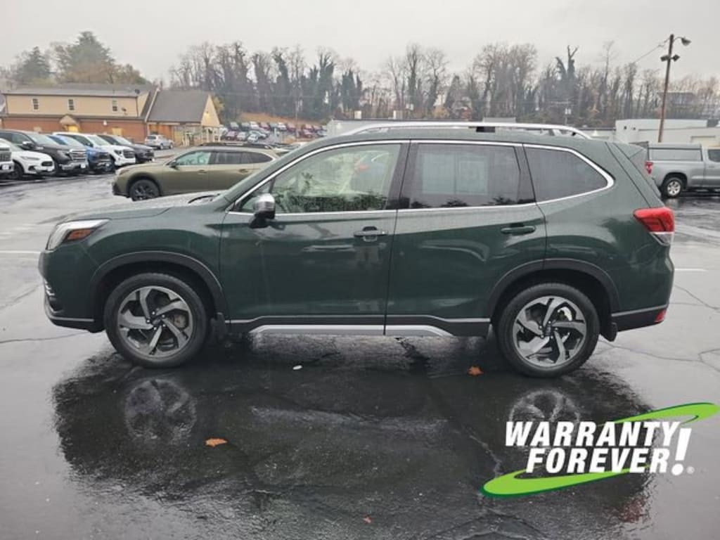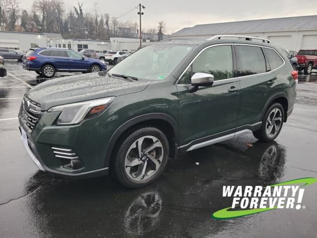Clean CARFAX. Cascade Green Silica 2022 Subaru Forester Touring AWD Lineartronic CVT 2.5L 4-Cylinder DOHC 16V **WARRANTY FOREVER!**, **NAVIGATION/GPS**, **SUNROOF/MOONROOF**, **LEATHER**, ** ACCIDENT FREE CARFAX REPORT **, Completely Detailed, Recent Oil Change, Multi Point Inspection, Forester Touring, 4D Sport Utility, 2.5L 4-Cylinder DOHC 16V, Lineartronic CVT, AWD, Cascade Green Silica, Black w/Perforated Leather-Trimmed Upholstery.