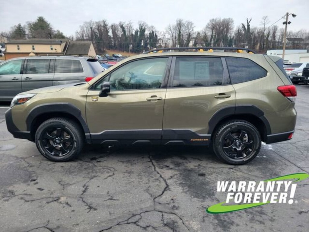 CARFAX One-Owner. Clean CARFAX. Green Metallic 2023 Subaru Forester Wilderness AWD Lineartronic CVT 2.5L 4-Cylinder DOHC 16V **WARRANTY FOREVER!**, **NAVIGATION/GPS**, **SUNROOF/MOONROOF**, **ONE OWNER**, ** ACCIDENT FREE CARFAX REPORT **, **STILL UNDER FACTORY WARRANTY**, Completely Detailed, Recent Oil Change, Multi Point Inspection, Forester Wilderness, 4D Sport Utility, 2.5L 4-Cylinder DOHC 16V, Lineartronic CVT, AWD, Green Metallic, Gray Premium Synthetic, 8 Audio w/harman/kardon & Power Rear Gate, harman/kardon 9-Speaker Audio System, Power Rear Gate, Radio: Subaru Starlink 8.0 Multimedia Nav System.
